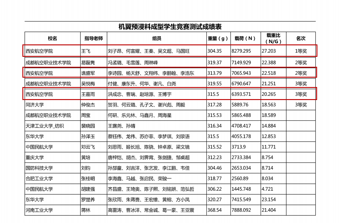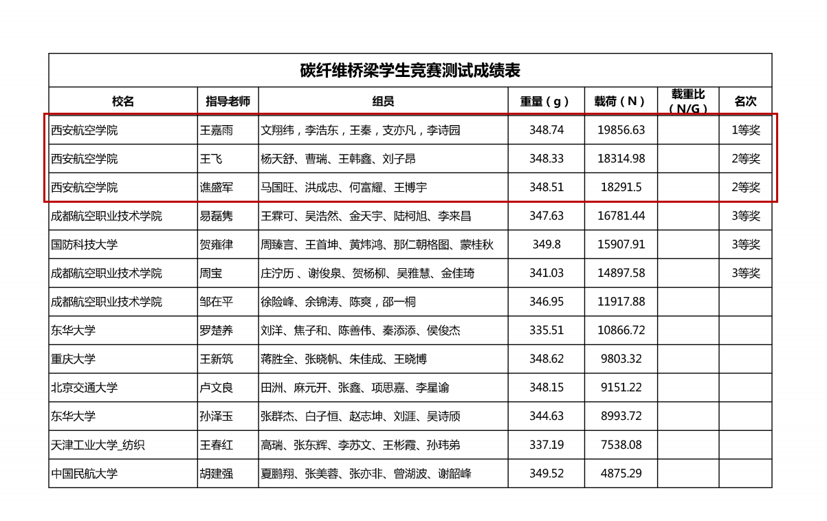 近日,由SAMPE中国大陆总会主办,美国波音公司赞助支持的第十四届SAMPE超轻复合材料机翼/桥梁学生竞赛落下帷幕。本次大赛共有来自上海交通大学、北京航空航天大学、西北工业大学、哈尔滨工业大学、同济大学、国防科技大学、中国民航大学、重庆大学等省内外30余所高校、100余支队伍参赛。贝博官网由飞行器学院王飞老师、谯盛军老师和机械工程学院王嘉雨老师指导的刘子昂、杨天舒等15名同学组成的6支代表队分别参加了预浸料机翼组和碳纤维桥梁组的比赛。经过激烈角逐,最终荣获国家级一等奖2项、二等奖3项和三等奖1项的历史最佳成绩。