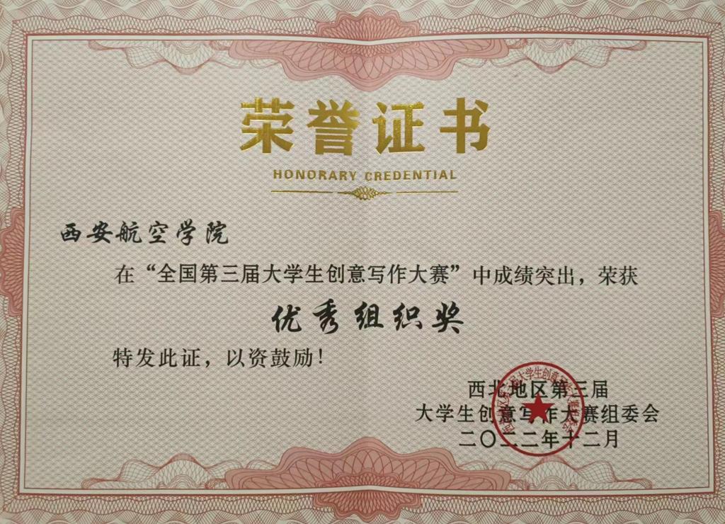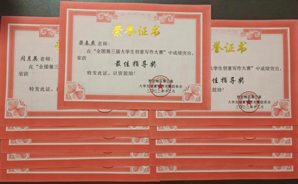 近日,由世界华文创意写作协会主办,西北地区创意写作基地承办的第三届全国大学生创意写作大赛圆满落幕。本次大赛共有来自华南地区、西北地区60多所高校,500多篇作品参赛,贝博官网由人文学院闫月英、韩鹏飞等11名老师指导的56名学生参加了比赛,经过激烈角逐,最终荣获一等奖8项,二等奖20项,三等奖15项的优异成绩,11名指导教师荣获“最佳指导奖”,学校荣获“优秀组织奖”。