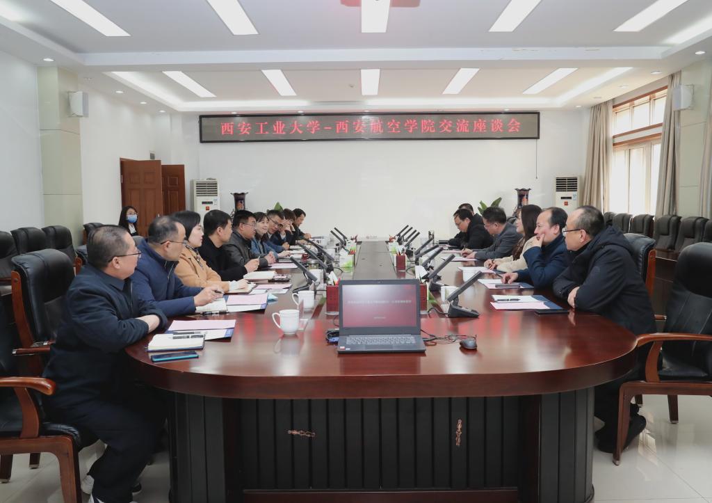 2月20日上午,西安工业大学副校长陈建,本科生院院长闫莉,科学技术研究院院长肖锋,总务处处长张刚,资产公司董事长、总经理王铁伟,研究生院副院长王恒等一行6人来贝博官网交流调研。校长祁玉龙,副校长金文出席座谈会。会议由金文主持。