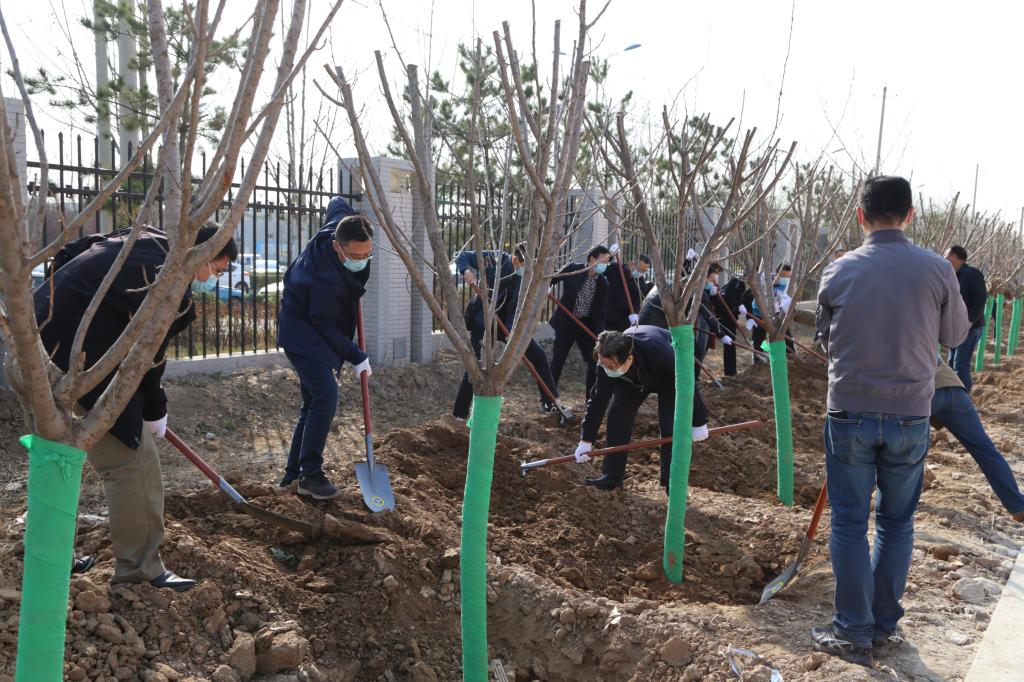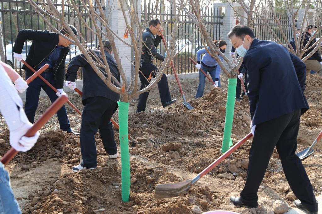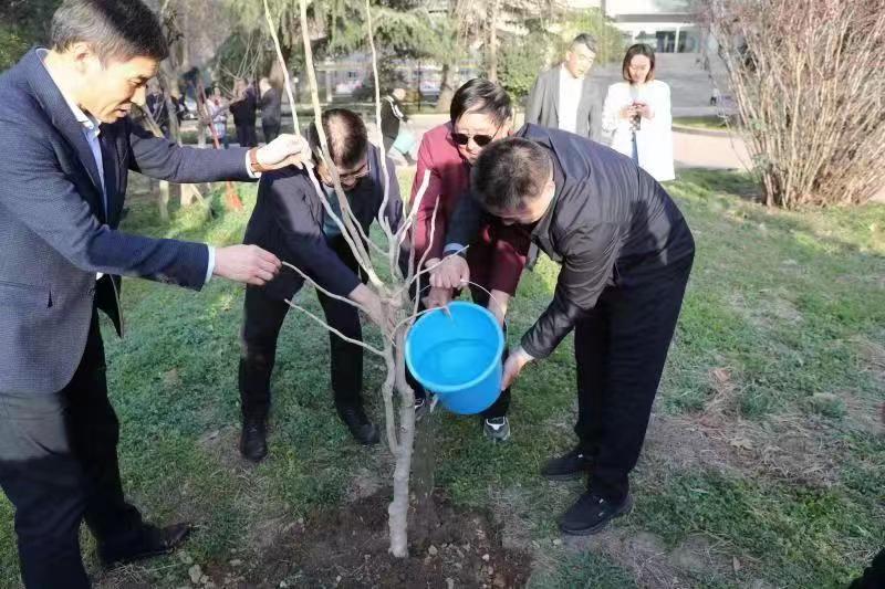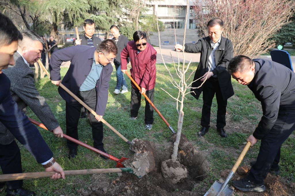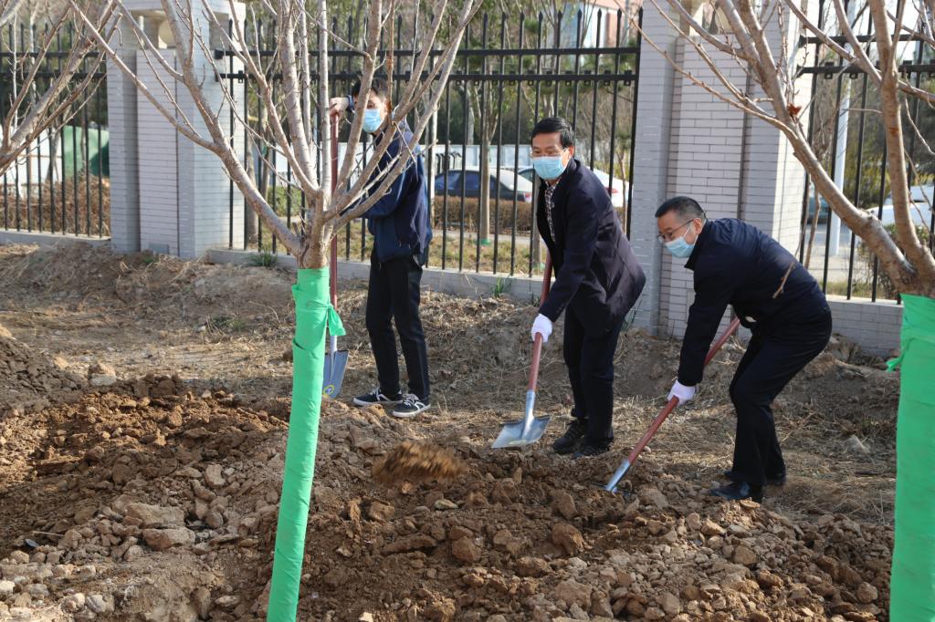 3月10日,校长祁玉龙,党委副书记曹渊、张昭,副校长宋文学、宁永录与全体干部一起在阎良校区开展了“我为学校添绿色”植树活动。