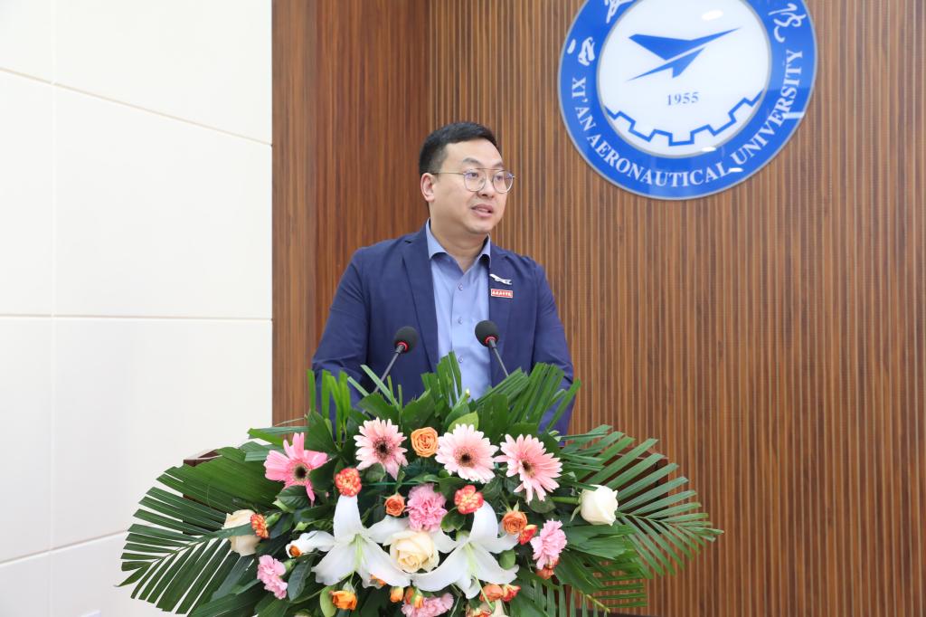 教师代表张阳发言时表示,要坚持终身学习,不断增进自己的学术深度,在民航学院的新舞台上用新视野、新智慧、新方法,肩负起培养高素质人才的神圣使命。
