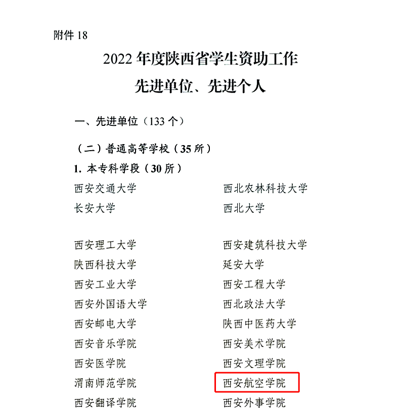 陕西省学生资助工作先进评选是陕西省学生资助事务中心紧紧围绕各高校学生资助工作近年来在贯彻学习习近平新时代中国特色社会主义思想、落实党的教育方针、巩固拓展学生资助系统党史学习教育成果、学生资助工作意识形态、机构建设、制度健全、政策落实、精准资助、资助育人、资助监管、信息化建设、资助宣传等方面工作进行综合考量,对贝博官网不断探索资助育人的新模式、新方法、新举措,全力推进精准资助和协同育人工作走向深入,写好新时代学生资助工作“奋进之笔”起到了推动作用。