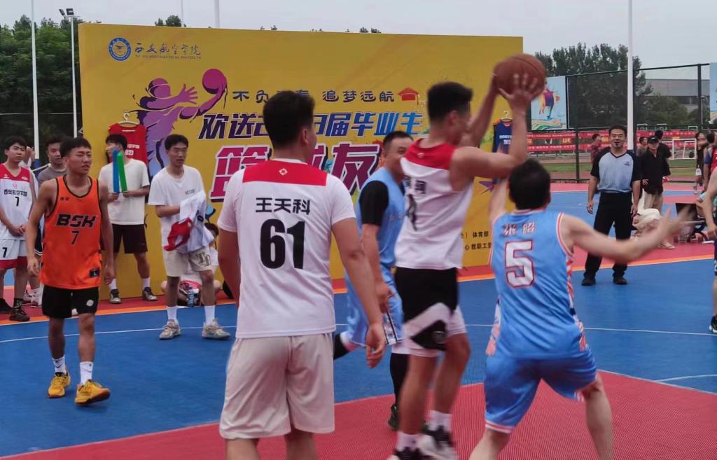 为欢送毕业生离校,增进毕业生爱校兴校情怀,促进师生情感交流,营造良好的毕业季氛围,6月28日晚上,由学生工作部(处)、体育部、校工会主办,心理健康教育中心、教职工篮球协会承办的“不负青春,追梦远航”师生篮球友谊赛于在阎良校区灯光球场成功举办。校党委副书记韩明军、张昭,副校长李季、宋文学和师生共同参加了比赛。