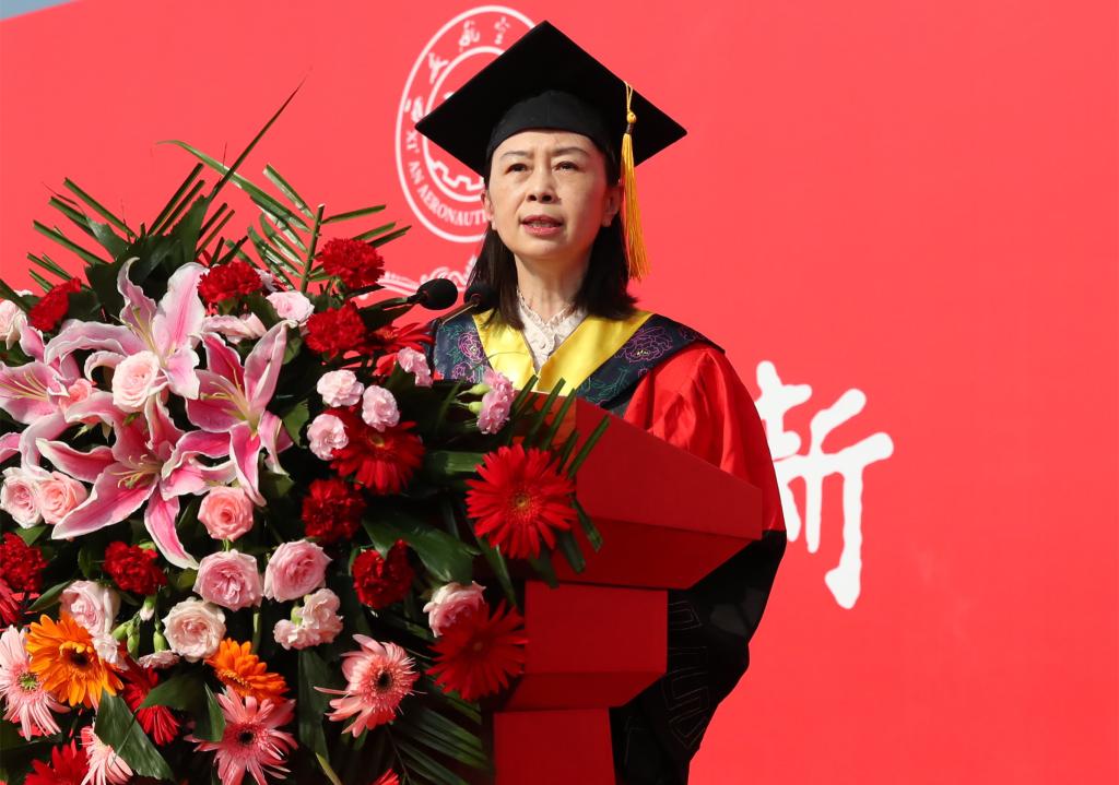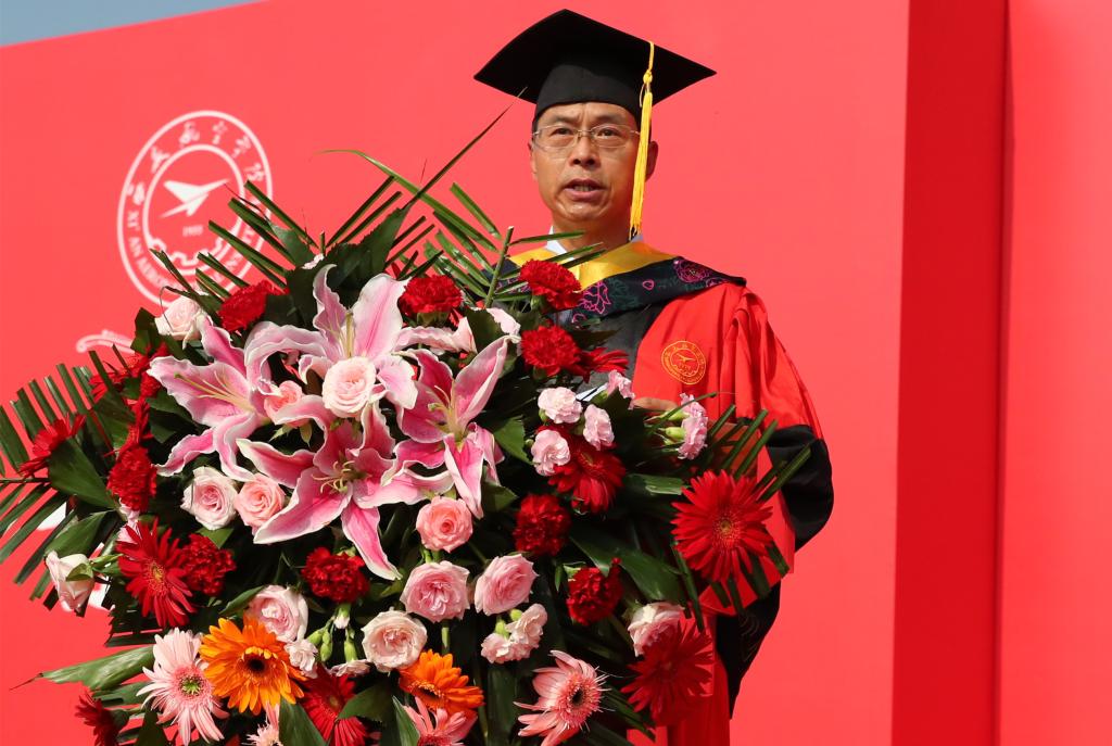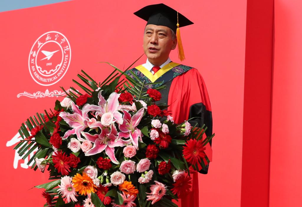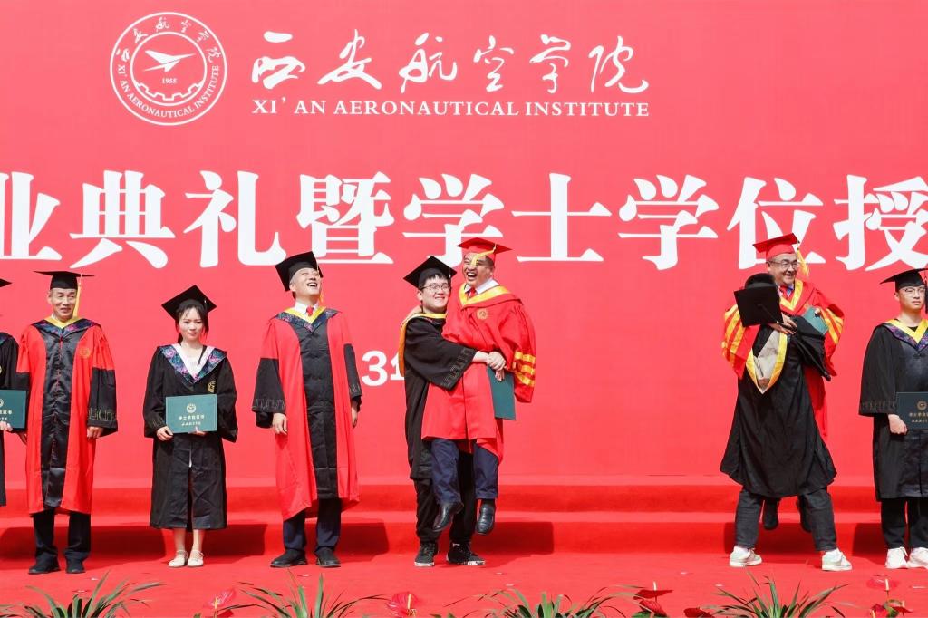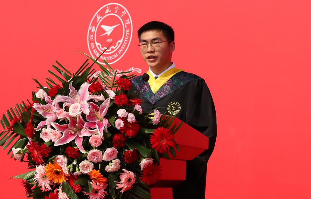 国家奖学金、“奋飞”校长特别奖学金获得者、2023届陕西高校优秀毕业生洪成忠代表全体毕业生在发言中勉励同学们始终牢记“德能日新、刚健有为”校训,发扬“航空报国、立德树人、激情进取、志在超越”的西航精神,做有理想、敢担当、能吃苦、肯奋斗的西航人,并庄严宣誓:航空信仰,西航精神,请党放心,强国有我。