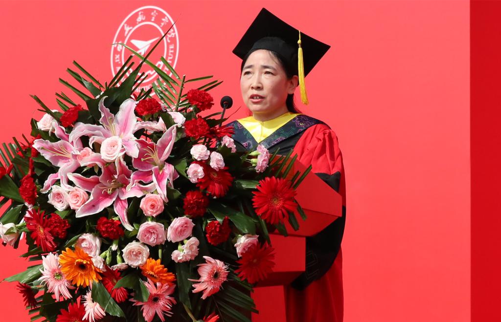 省级教学名师、理学院教授韩慧蓉代表全体教师向2023届毕业生送上诚挚祝福,希望同学们坚守诚信、正直的原则,本本分分地做人,踏踏实实地做事,在未来的人生旅途中始终学习,将每一次挫折作为下一次成功的前奏,成为一个有担当、有责任、有抱负的人。