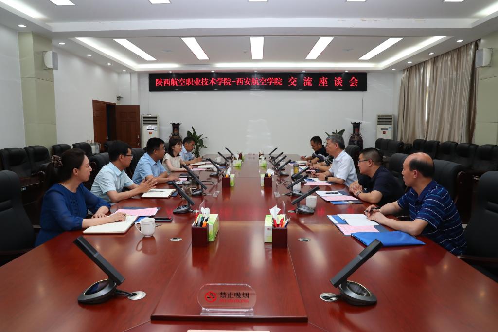 7月5日,陕西航空职业技术学院校长冉文,副校长甘沛沛,纪委书记、副校长王光钰一行6人来校调研交流。校长祁玉龙、副校长金文,党政办公室、教务处等部门负责人参加了交流座谈会。