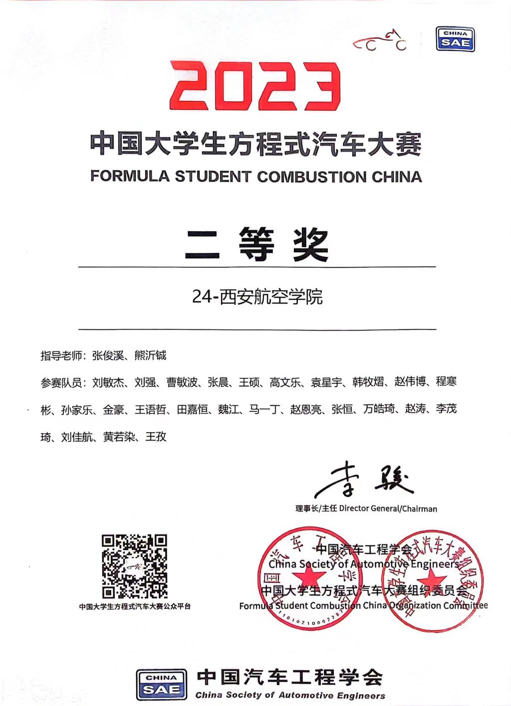 2023年10月14日,由中国科学技术协会指导,中国汽车工程学会主办,襄阳市人民政府支持的“2023中国大学生方程式汽车大赛”在襄阳市东津新区华侨城奇速卡丁车运动公园落下帷幕。经过各个赛项的激烈竞争,贝博官网参赛队伍NIRVANA方程式车队以总分371.32分获得全国二等奖,取得贝博官网在这一赛事上的历史最佳成绩。
