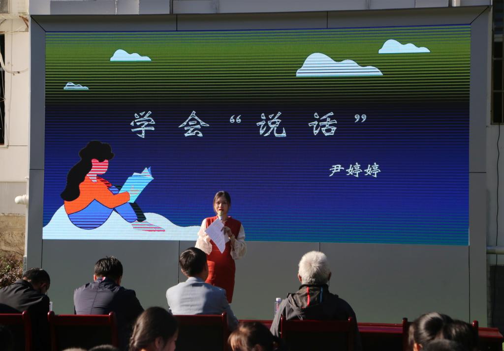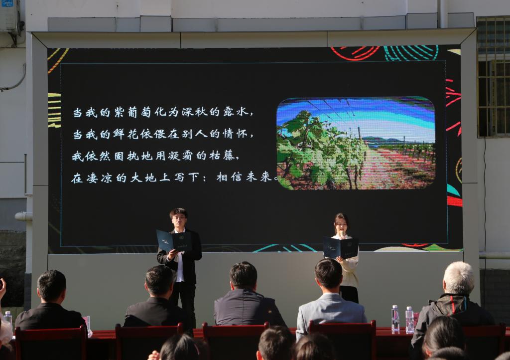 活动中,贝博官网人文与外国语学院尹婷婷老师以《认识“说话”》为题,结合自己的演讲和朗诵经验,从内涵意义、如何准备两个方面为师生作了一场生动的讲座。两校师生代表诵读了《买一张火车票去看母亲(节选)》《狼牙山五壮士》《相信未来》《延安,我把你追寻》等篇目,经典诗句句句入耳、声声入心,使师生们感受到澎湃的爱国情怀。人文与外国语学院史云龙老师现场挥毫泼墨,进行了国画教学示范,与师生进行互动交流,营造了学习优秀传统文化的浓厚氛围,使在场的每位师生都沉浸于其中,享受着经典文化的熏陶和滋养。