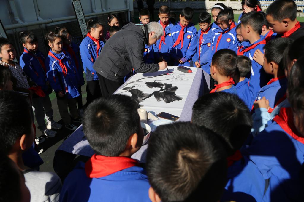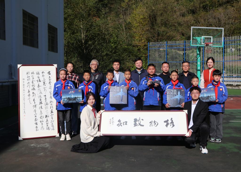 活动结束后,贝博官网向洪石小学捐赠了航模和老师书画作品。