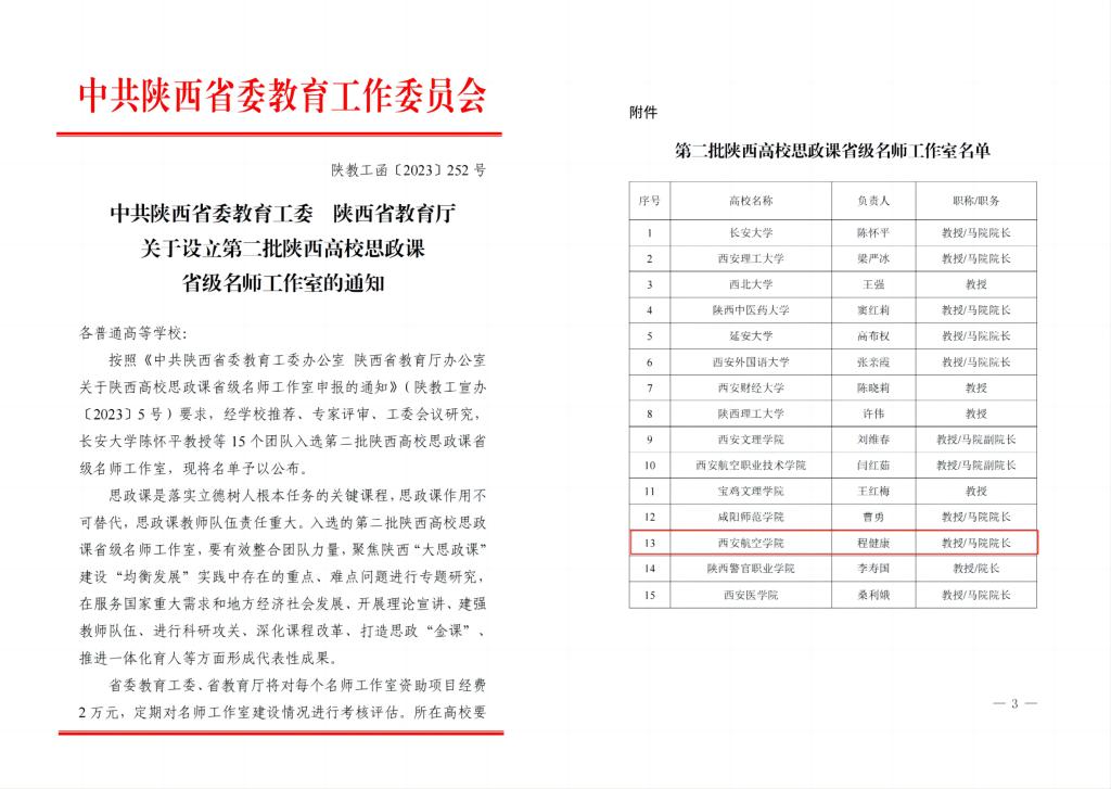 近日,中共陕西省委教育工委,陕西省教育厅联合下发文件,公布了第二批陕西省高校思政课省级名师工作室,贝博官网马克思主义学院程健康教授名师工作室成功入选。