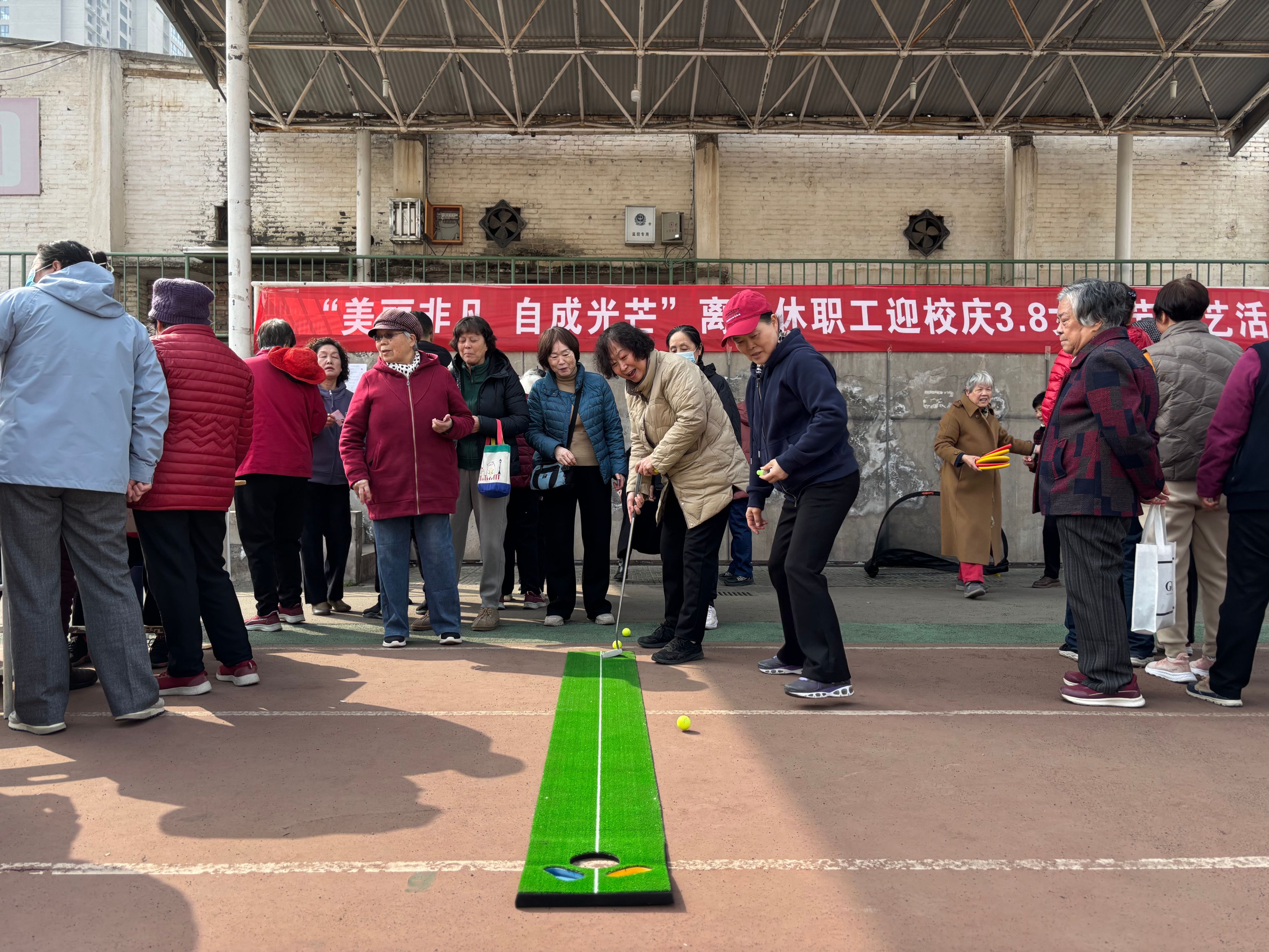 游艺活动设置了高尔夫推杆、趣味投壶、乒乓接力等八个趣味项目,参与者凭集章卡有序体验。老教师们或专注竞技展现风采,或携手协作笑声连连,工作人员全程引导,医疗安保实时待命,游艺活动安全温馨。